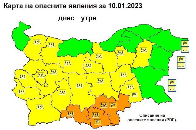 Времето е потенциално опасно. Прогнозираните метеорологични явления не са необичайни, но бъдете внимателни. Бъдете в течение на очакваните метеорологични условия и по възможност избягвайте рискове.