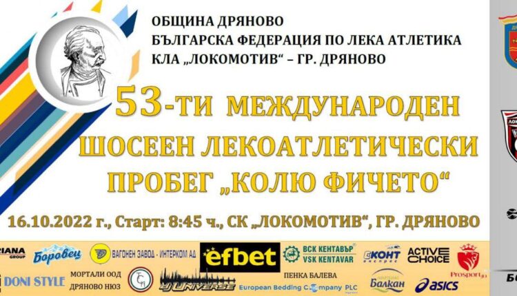 Непосредствено преди традиционните есенни празници на града, в неделния 16-ти октомври, Спортен комплекс „Локомотив“ – Дряново, ще събере участници от цялата страна, организатори и зрители на петдесет и третото издание на Международен лекоатлетически пробег „Колю Фичето“ и второто издание на „Дряново Рън“ – част от националната верига „България Рън“.