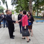 Г-н Мичев подари на посолството своя картина, нарисувана предния ден,  на която е  училище „Иван Хаджийски“, но в сегашния му вид – новото училище.