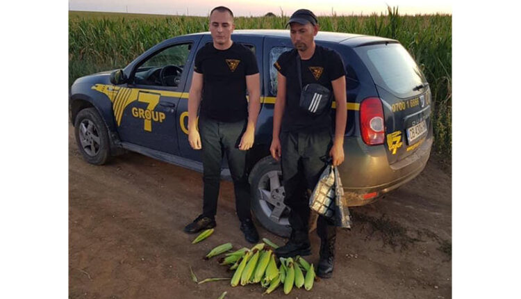 Двама служители на охранителната фирма “Груп 7” са били хванати да крадат кочани с царевица директно от нива, която се охранява от лидера в охранителните услуги “Делта Гард”. На снимката по-горе виждате лицата на тези “герои”.
