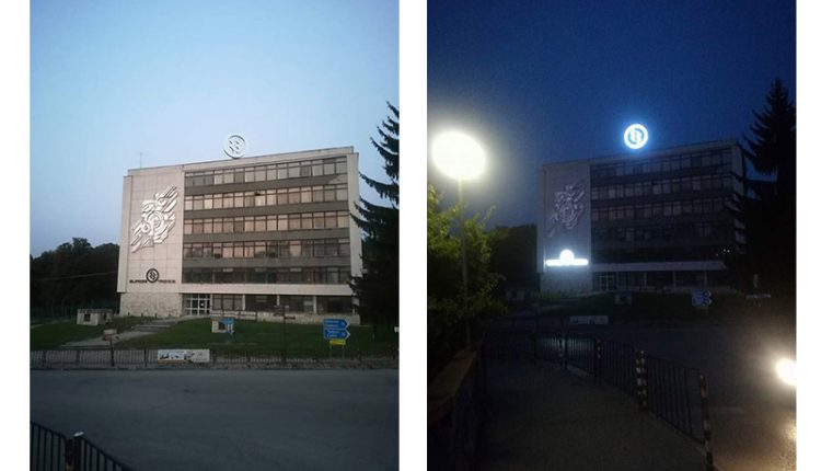 ТАЗИ ВЕЧЕР ГРЕЙНА ЕДИНСТВЕНОТО ВЪРТЯЩО СЕ ЛОГО В БЪЛГАРИЯ, ПОСТАВЕНО НАД АДМИНИСТРАТИВНАТА СГРАДА НА ЕЛПРОМ ТРОЯН