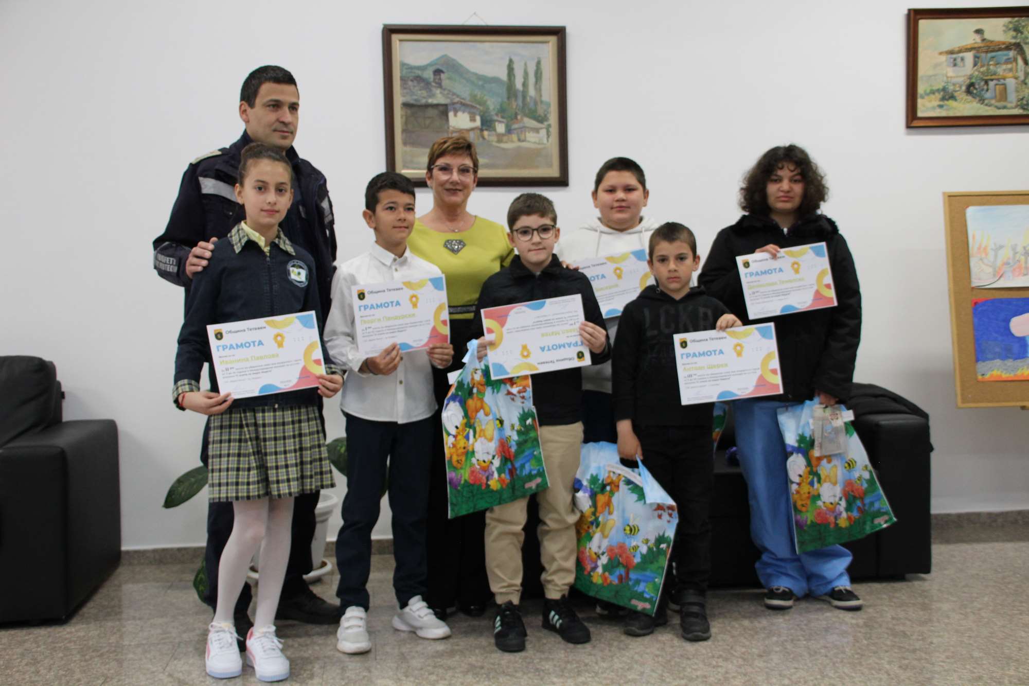 Кметът на Община Тетевен – д-р Мадлена Бояджиева и началникът на пожарната в града – гл. инспектор инж. Николай Христов наградиха участниците от общинския етап на Международния конкурс за детска рисунка „С очите си видях бедата“. Той се проведе под формата на изложба, а комисия определи победителите. Организатор на този етап бяха РСПБЗН – Тетевен и Община Тетевен.