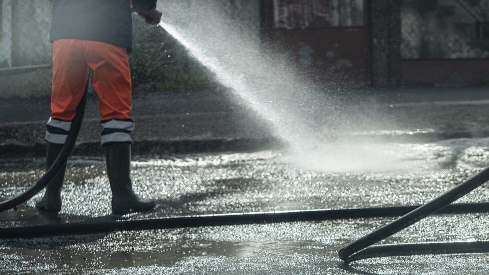 Екипите на ОП „Комунални услуги“ работят по предварително изготвен график за измиване на пътните платна и тротоарите.